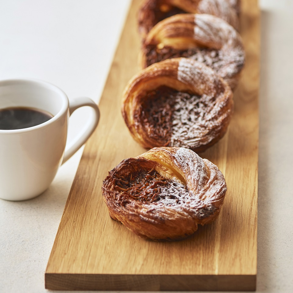 - デニッシュ生地に、マジパンとドリーミングフィリング(ココナッツ、モラセスシュガー、バターフィリングなどを合わせたココナッツフィリング)をのせて焼き上げました。