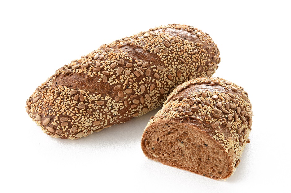 ファーマーズブレッドの生地に穀物(大豆、ライ麦粉、オートミール、黒ごま、ひまわりの種)等を混ぜ込んで、表面には白ごまとひまわりの種をトッピングしました。旨みのある生地に穀物の食感と香ばしさが楽しめます。