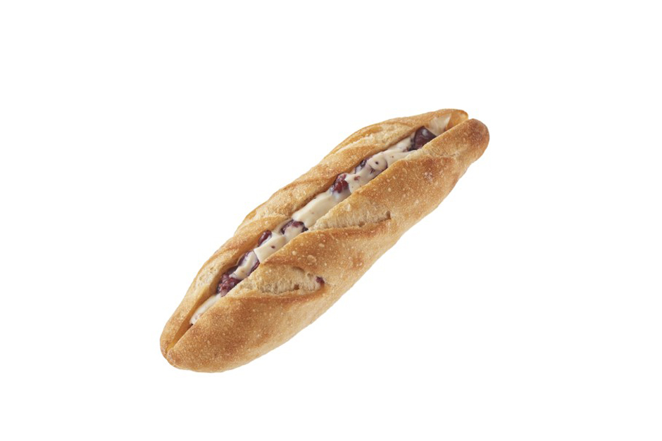 クランベリーのパンの生地をスティック状に焼き上げ、ドライクランベリー入りのクリームチーズフィリングを絞りました。旨みのあるファーマーズブレッド生地に、クランベリーの酸味とクリームチーズの味わいがマッチ。ブレイクタイムはもちろんのこと、サラダと合わせてランチにもおすすめの商品です。
