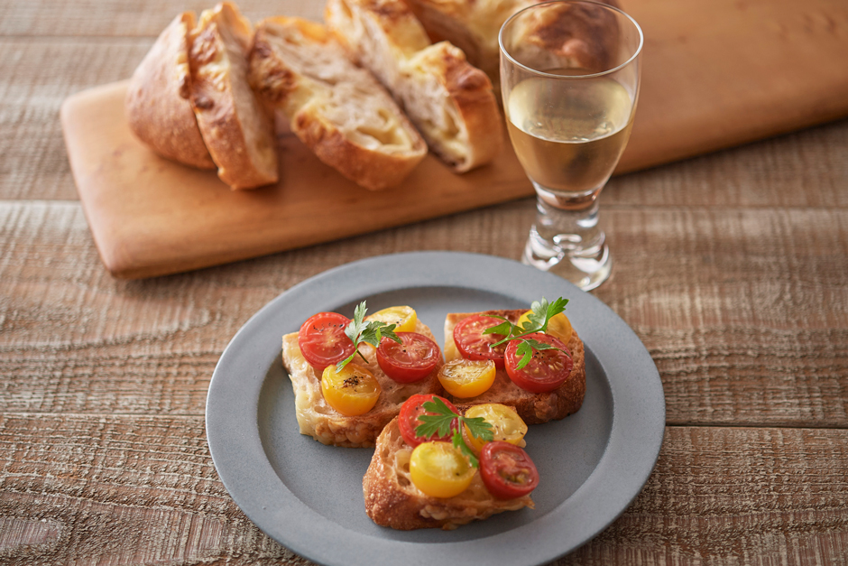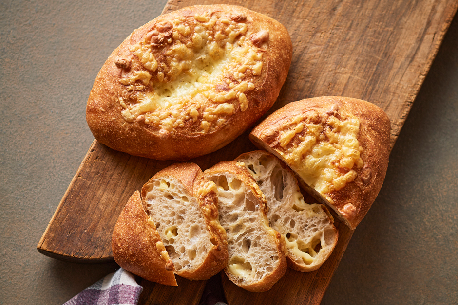 ファーマーズブレッド生地に角切りのチーズを巻き込み、サムソーチーズをトッピングして焼き上げました。しっとりとした生地にころころと入ったチーズのコクのある味わいとサムソーチーズのナッティな味わいのバランスがよく、そのままでも夜のおつまみにもおすすめのパンです。