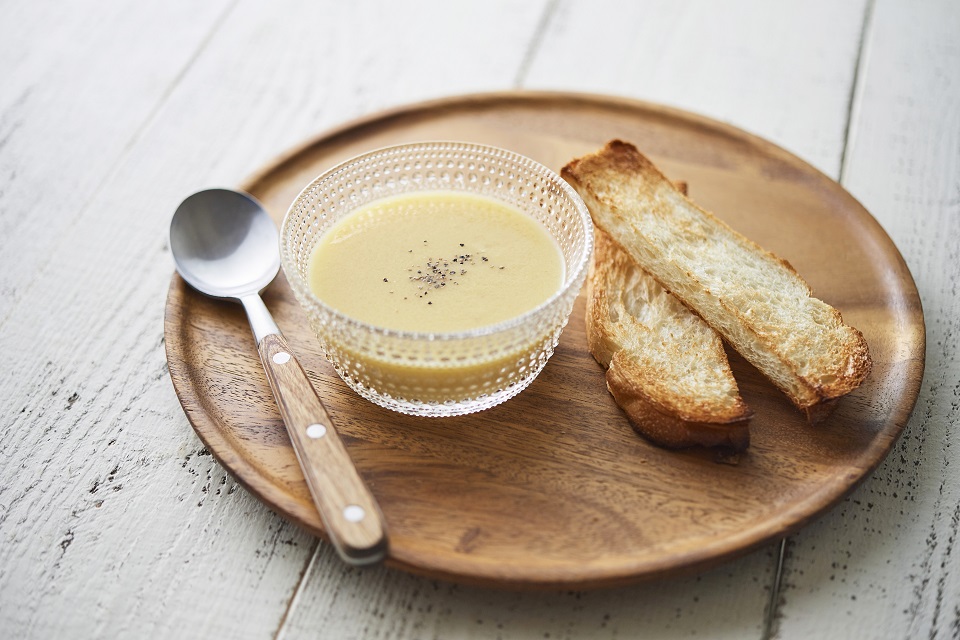 野菜の色と味わいをいかしたスープ。コーンの淡い黄色が特長です。