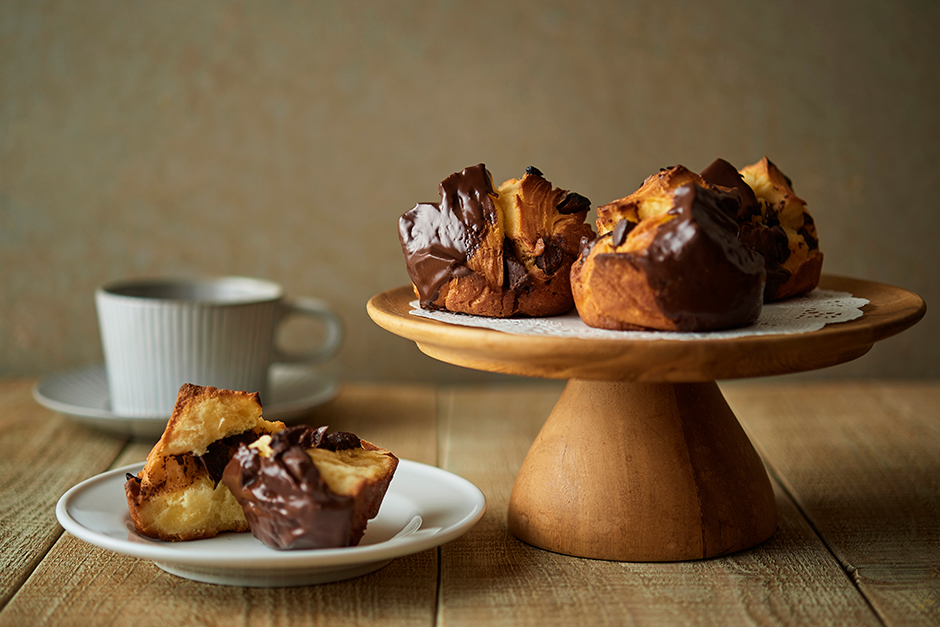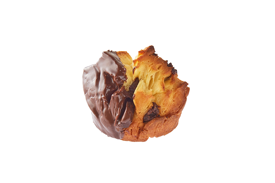 デンマークスコーンにチョコレートを入れて焼き上げ、チョコをトッピングしました。