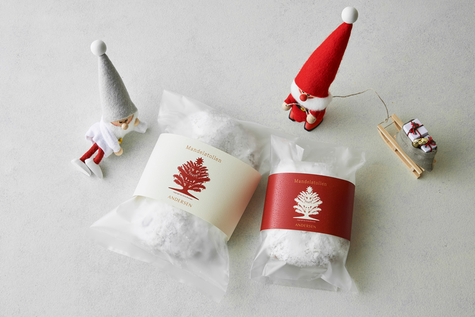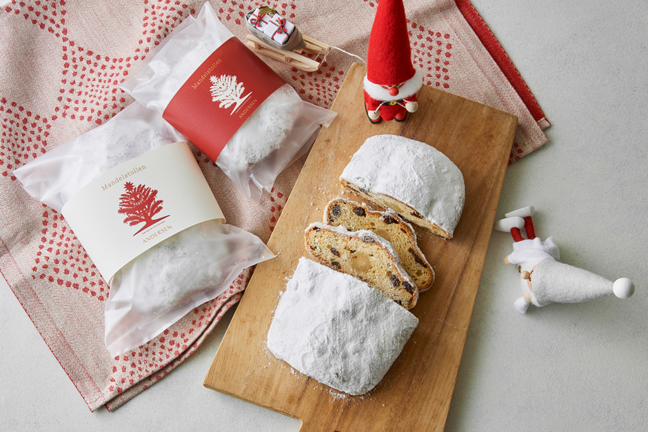 シュトレンの生地の中央にマジパンを棒状において一緒に焼き上げることで、おいしさを引き出し、しっとりとした食感に仕上がります。コーヒーや紅茶(グリュックティー)はもちろん、食後にはデザートワインとご一緒にどうぞ。