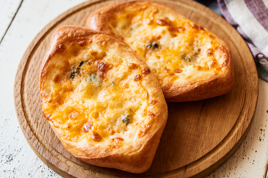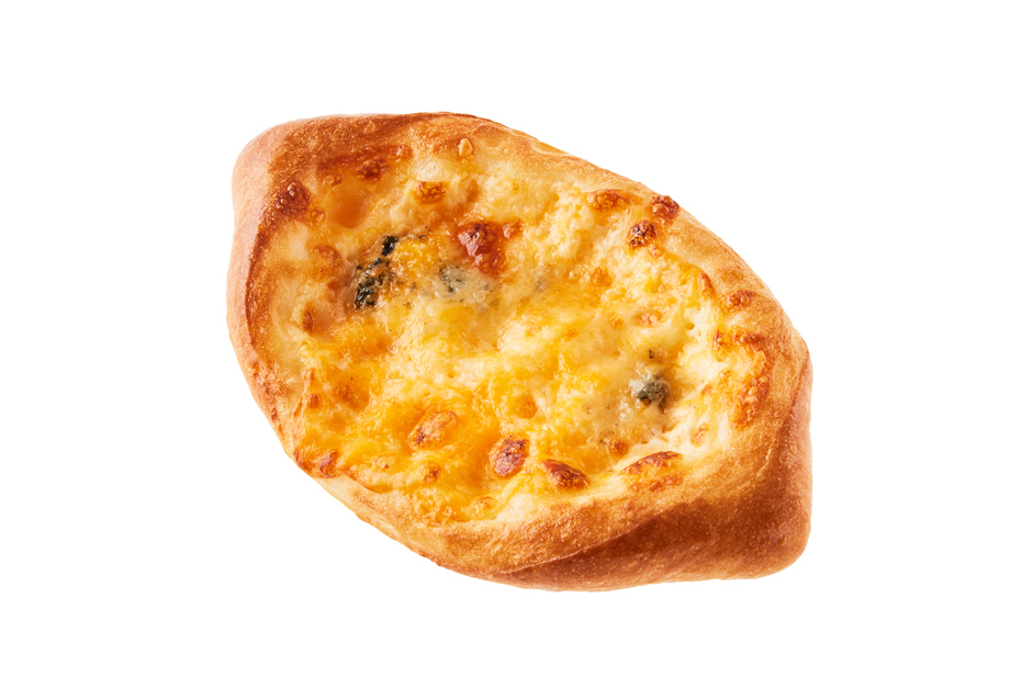 生地に4種のチーズをトッピングして焼き上げ、オリーブオイルをぬって仕上げました。焼きたては4種のチーズがとろりと溶けます。