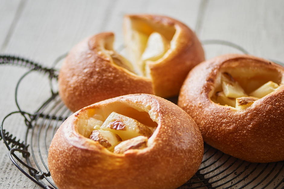 歯切れの良い生地にホクホクとした食感の2種類のじゃがいもの味わいが好相性。じゃがいものおいしさがシンプルに楽しめる商品です。