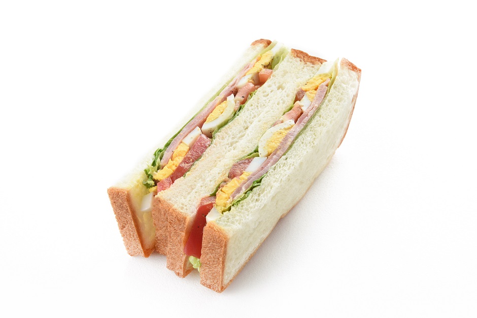 アンデルセンイギリスのパンでレタス、ベーコン、トマト、ゆで卵、サウザンアイランドソースなどをはさみました。