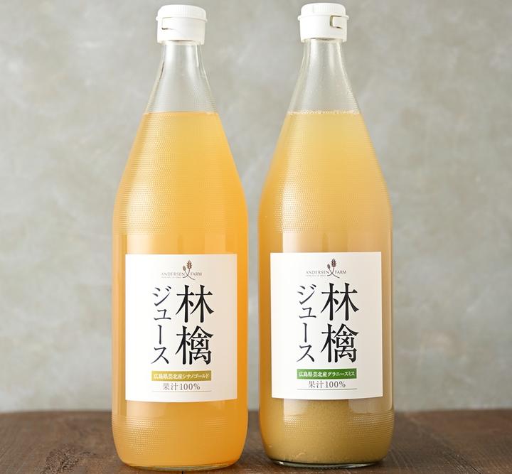 アンデルセンファームで収穫されたりんごを使った、果汁100%のりんごジュース。2種類のりんごの味の違いをお楽しみください。