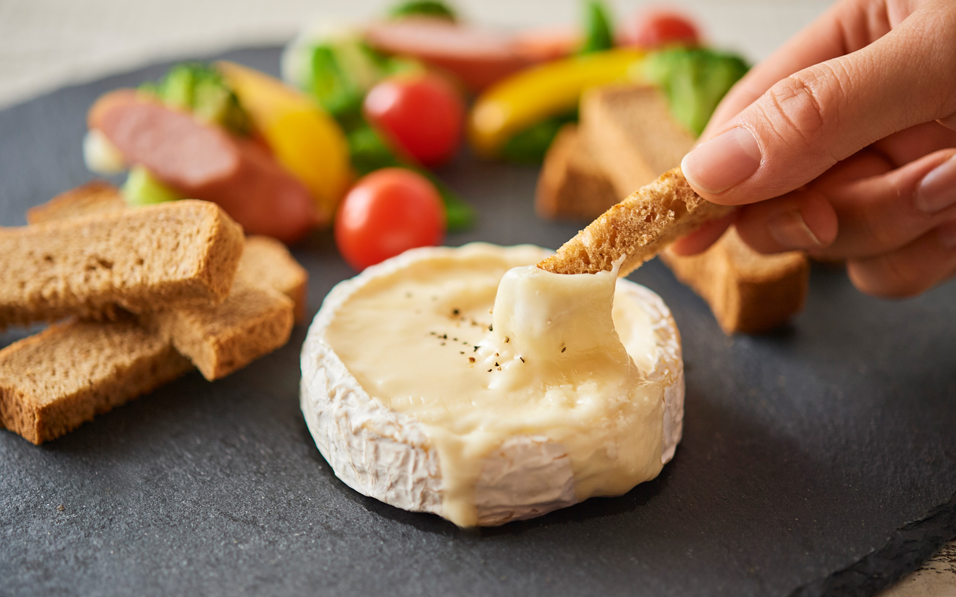 お皿に、温めたカマンベールチーズ(上にブラックペッパーをお好みでかけます)、野菜を盛り付けて、できあがり。